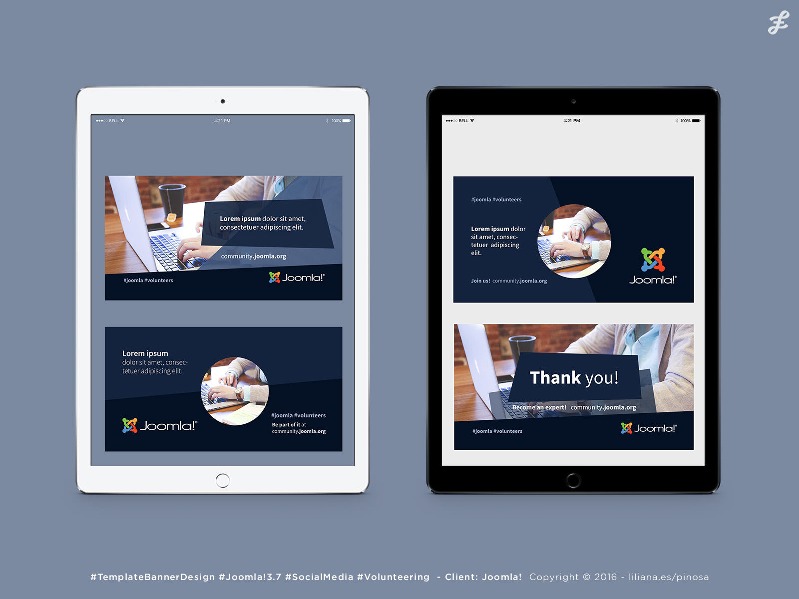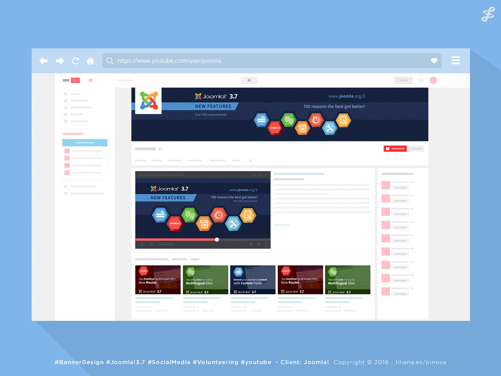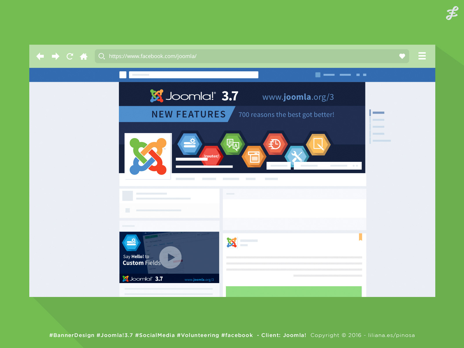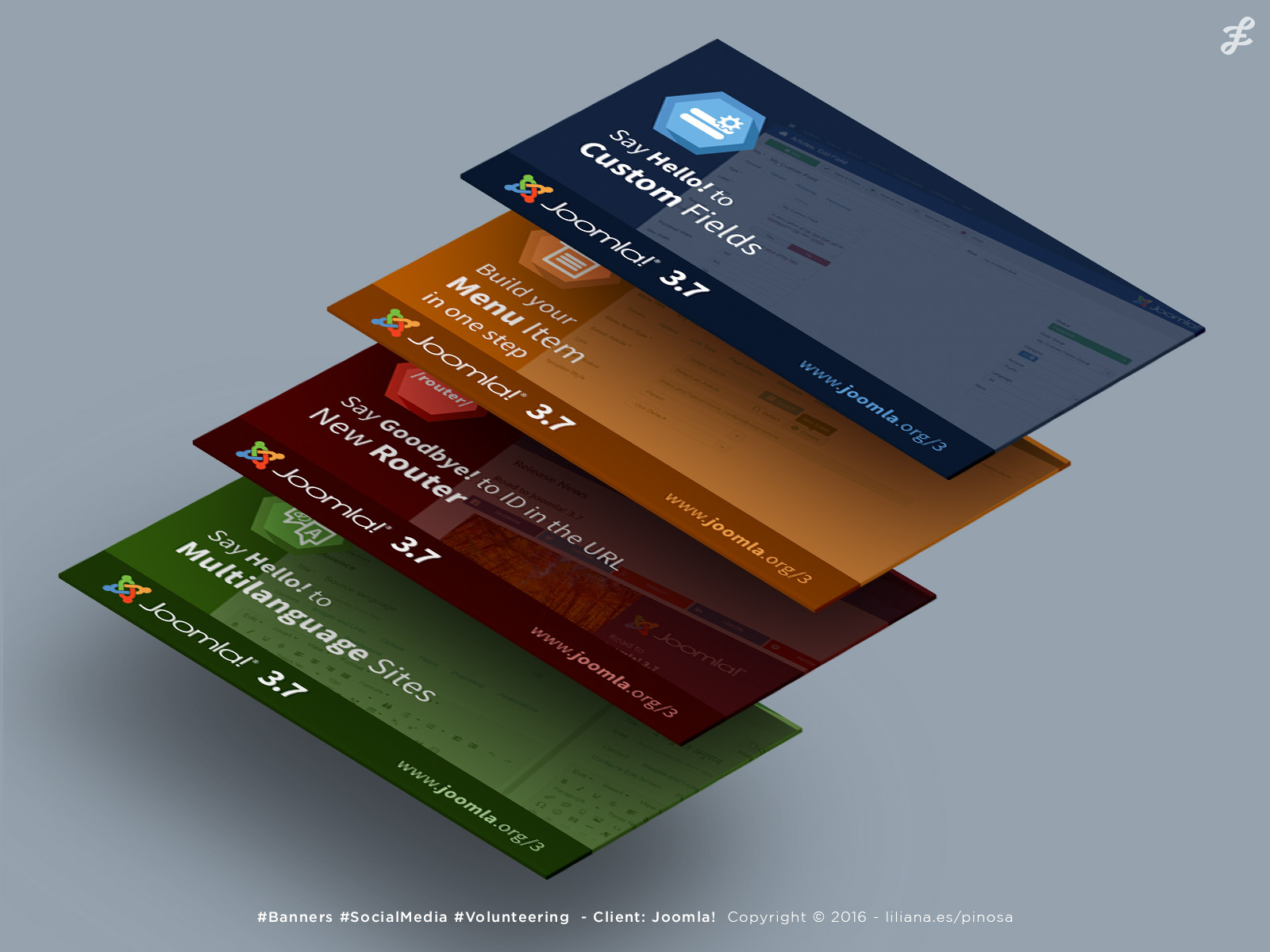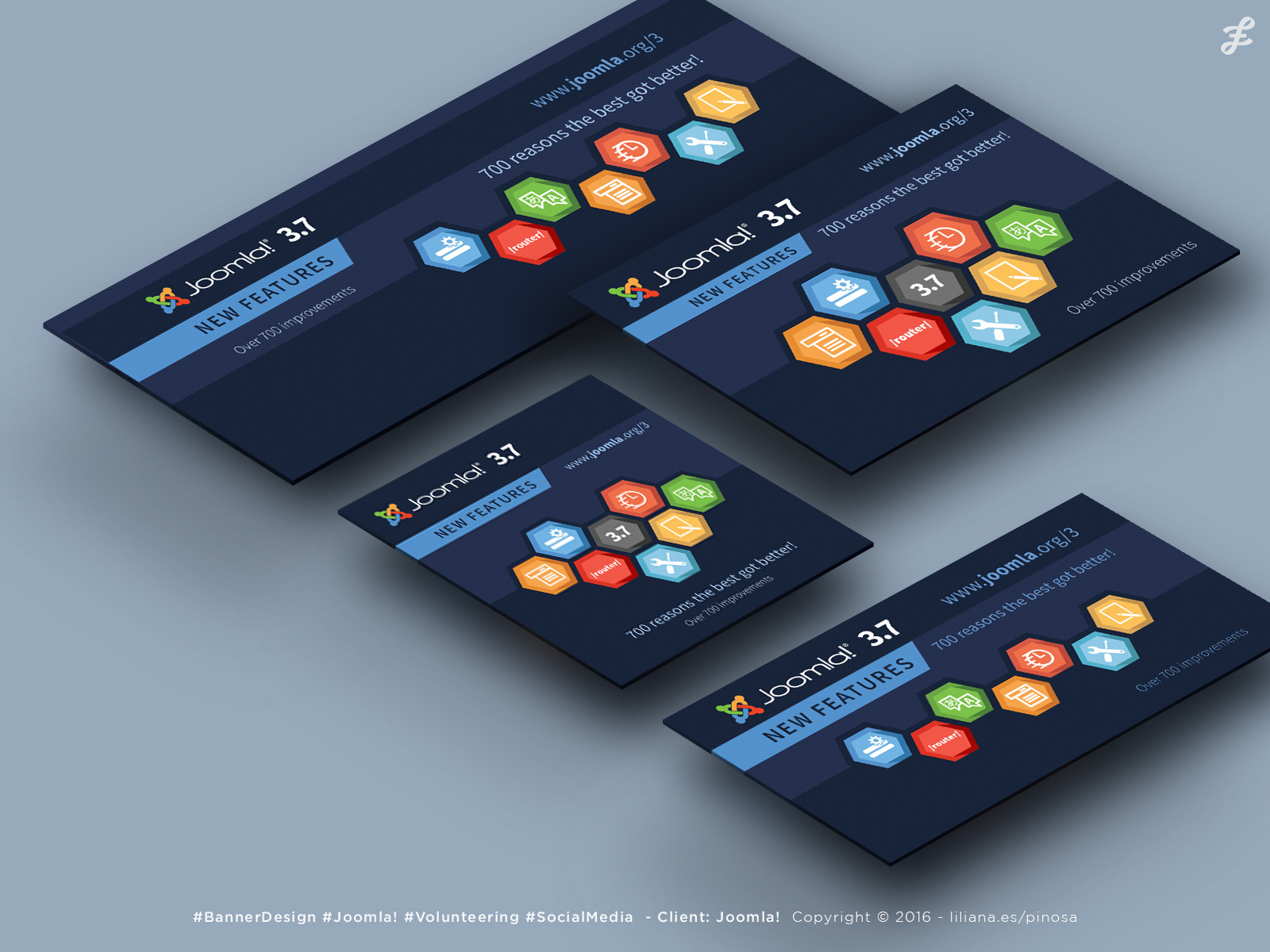 Joomla 3.7 features graphic design. Social media graphics, icons.